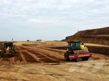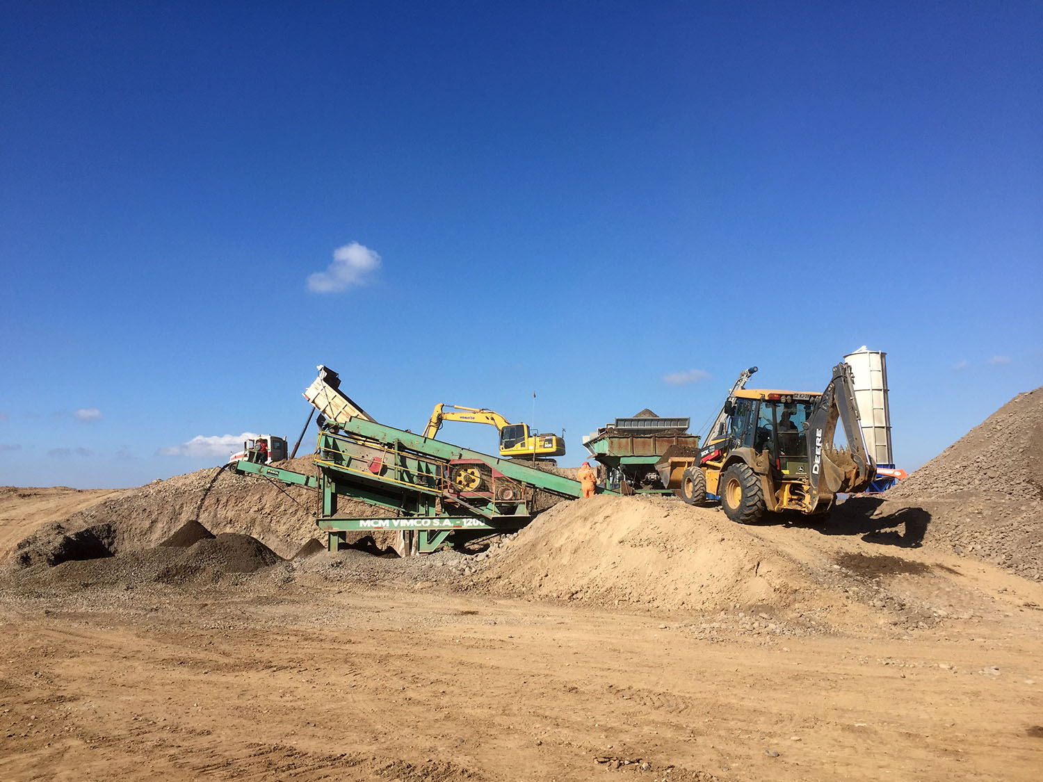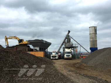 Bases granulares tratadas con cemento producidas homogéneamente en planta de hormigones propia.